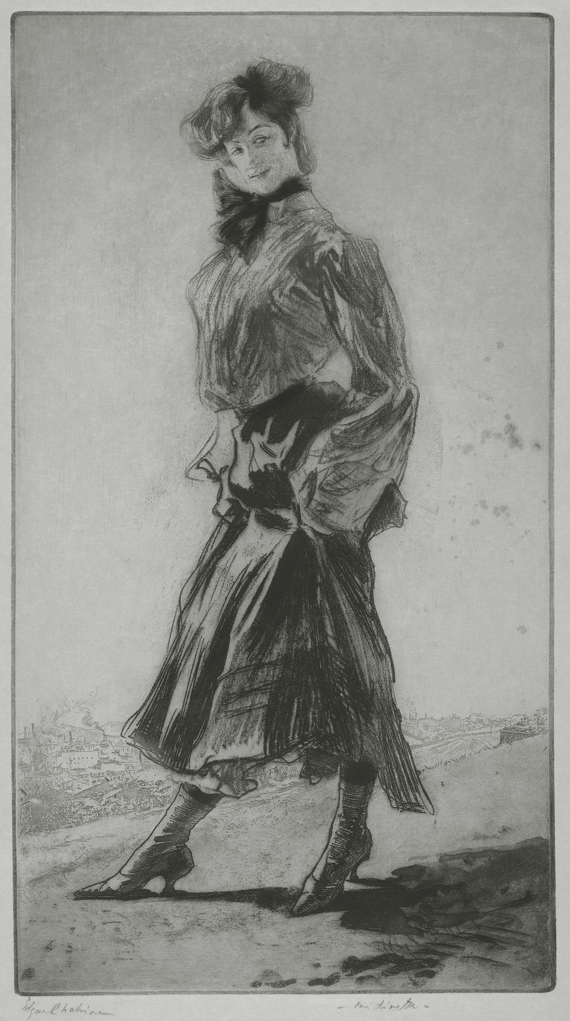 As stereotypical as it sounds, the Parisian experience could not be narrated without the mention of fashion…and this ‘mention’ manifested itself in a lavish collection of clothes from the period, many of which come from the prestigious Musée Galliera. I was skeptical about the vision that this section would give about fashion overall, imagining that it would remain with the luxurious silhouettes and froufrous of the Belle Epoque’s high-class Parisienne, coquettishly flashing her ankles at her beau on a boulevard. Yet I was proven wrong. While ball dresses and tea gowns dominated the darkened room with their lace and satin, reflecting the fashion plates and caricatures of their time, the outfits of working class women were shown with just as much importance, showing their lasting influence on practical womenswear from the early 20th century onwards. The “midinette” – the young working class woman whose lunch break was at midday – captured a collective imagination that resides somewhere between a picturesque Parisian fantasy and its gritter reality outside of the limelight. As unimportant as the hardworking and coquettish midinette would appear to her contemporaries, she spoke to me far more than the idle rich lady in a lace tea gown could. While Belle Époque fanciness was remembered far more in terms of history and depiction of an era, her legacy continued as many women’s main fashion concern now resides in what they will wear at work rather than the next gala (are these the contemporary midinettes?)